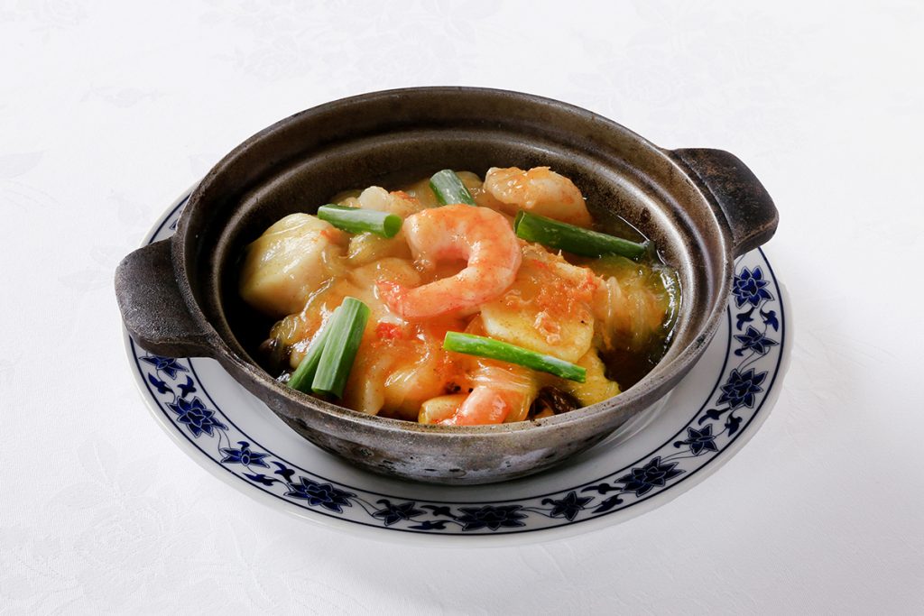 海老やホタテなどの海鮮と野菜を、今が旬の上海蟹の味噌を贅沢に使った鍋料理です。上海蟹の濃厚な味わいと旨味を堪能してください。