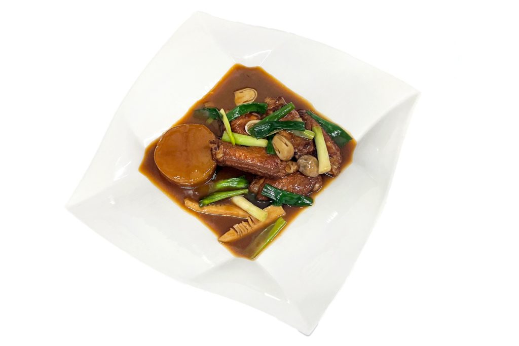 手羽先と大根を中華料理で味わう一品。砂糖を焦がしカラメル状から作る煮汁は絶品で、旬の大根が旨味をたっぷり吸っています。ぜひご賞味ください。
