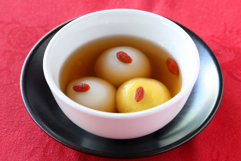 春節の元宵節に味わう縁起のよい温かい点心。満月に見立てたお団子を、横浜元町ラ・テイエールの香り高いフレーバーティーに浮かべました。