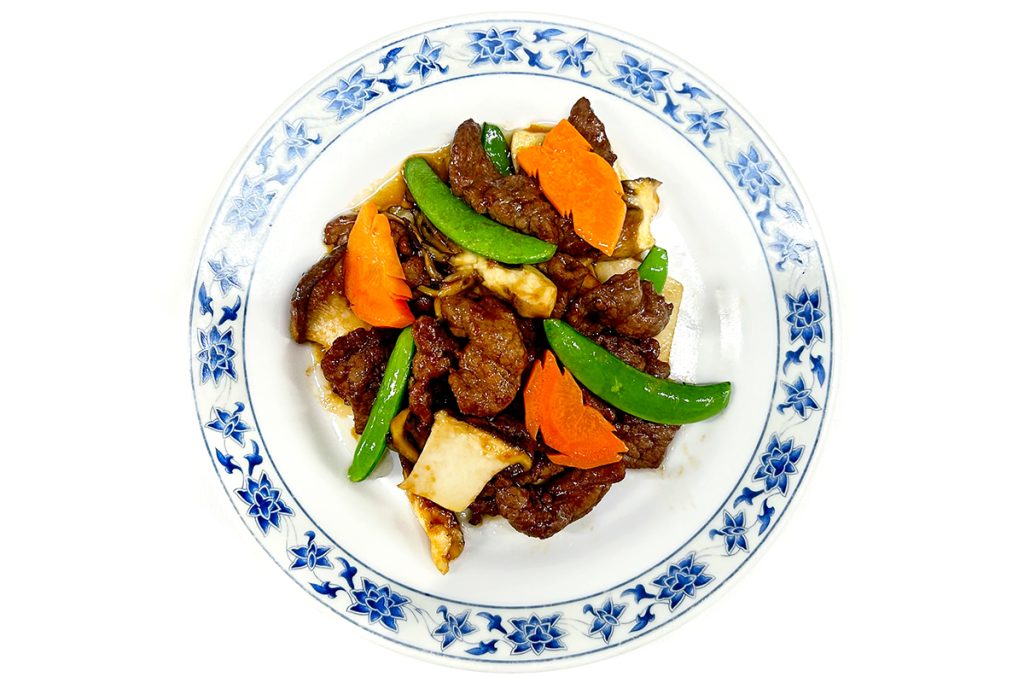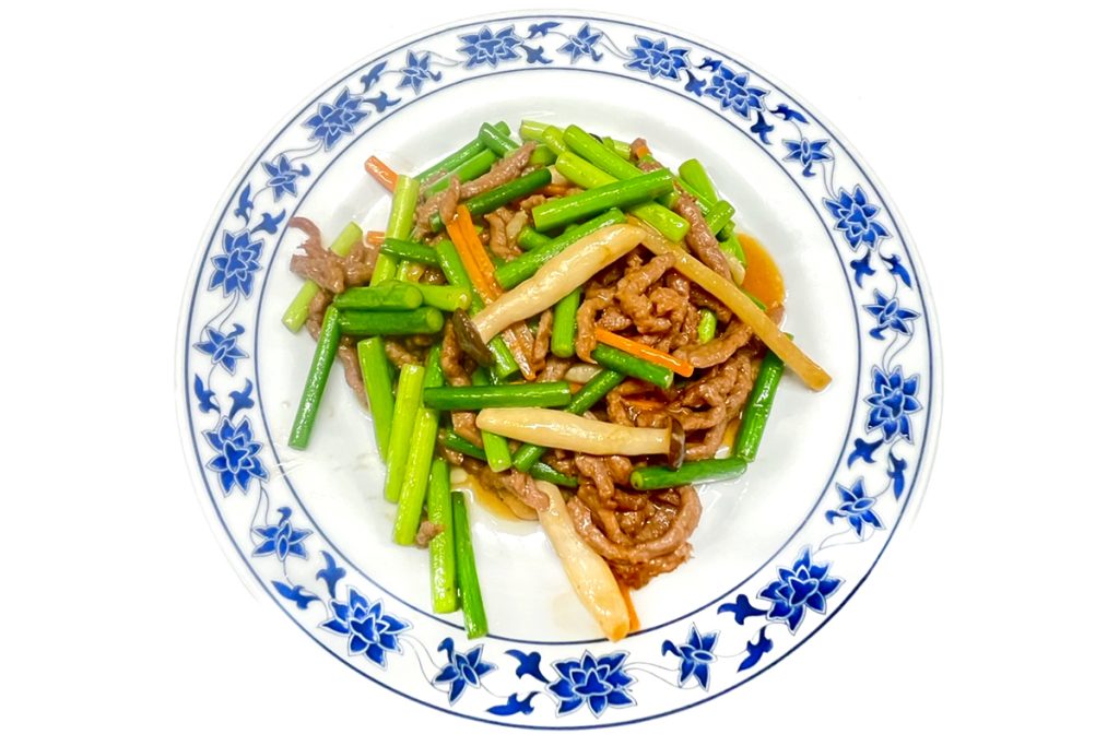 D.ニンニクの茎と牛肉のオイスターソース炒め