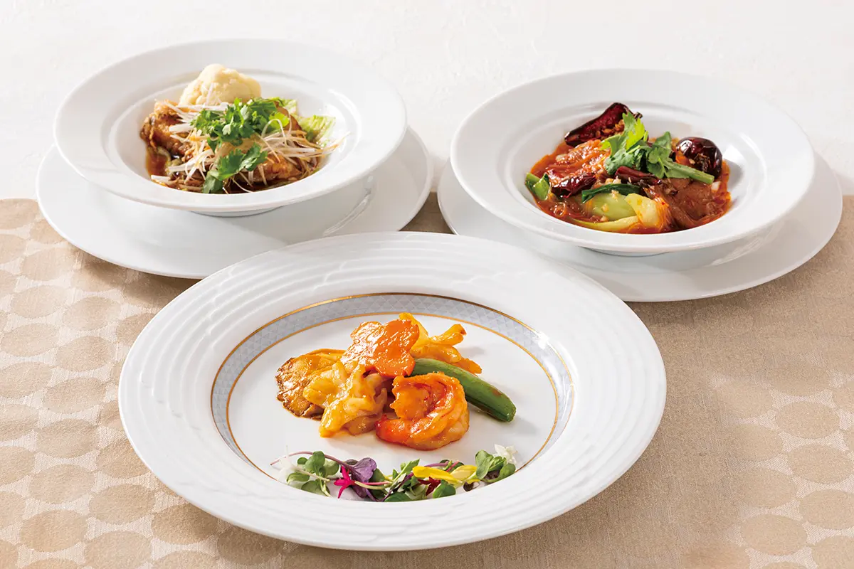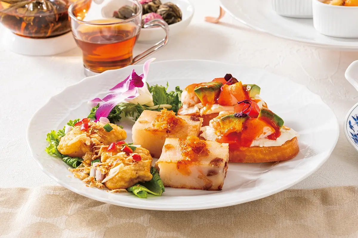 クラシカルなアフタヌーンティーとは異なり、前菜、点心、選べるメイン、麺飯料理、そしてスイーツまで、美味しさを少しずつ、心地よく味わうイブニングタイムをご体感ください。