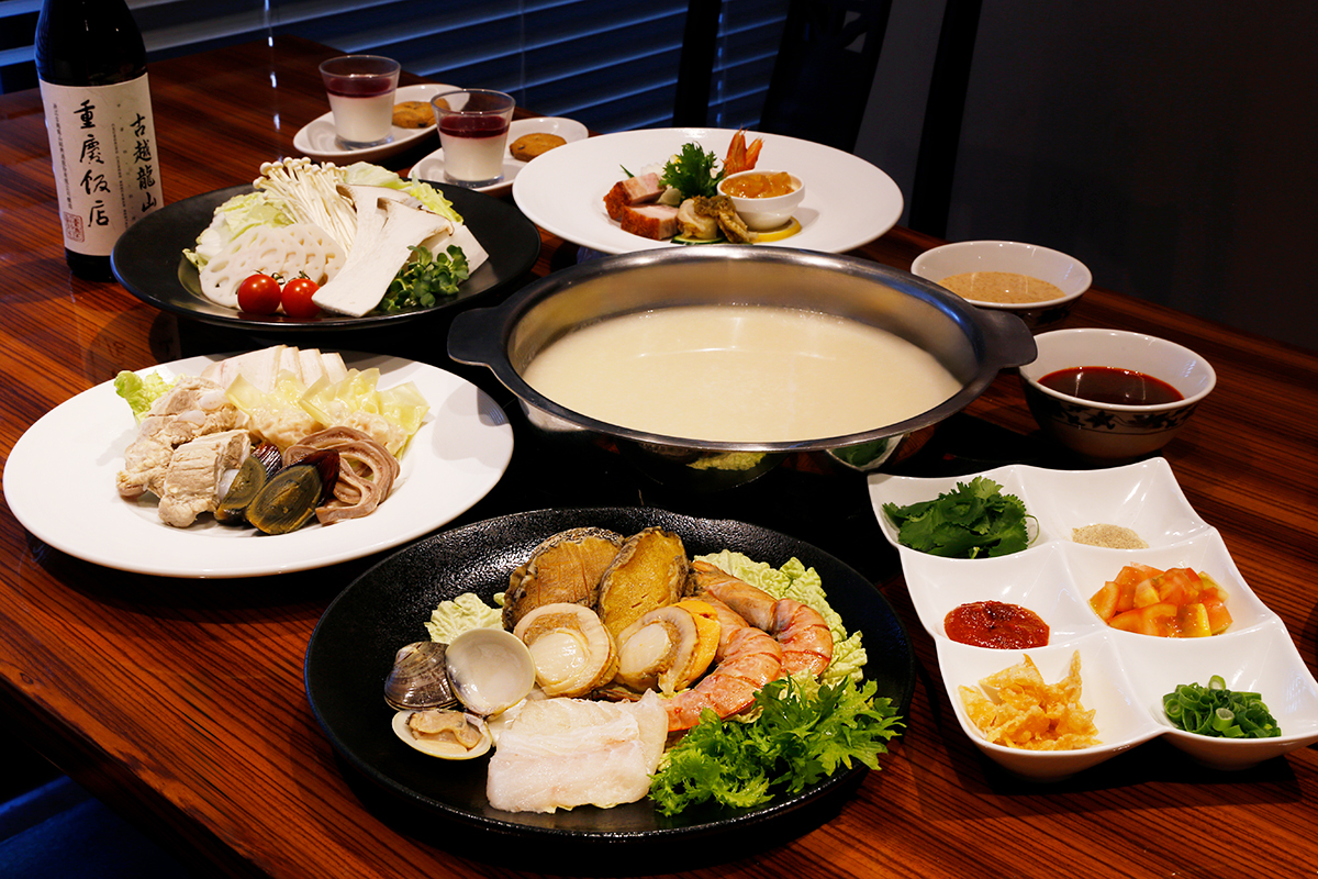 重慶飯店 本館では、個室限定で火鍋をご用意しております。お粥火鍋のほか、季節の「酸菜火鍋」や、4種のスープから2種お選びいただけるプランをご用意しております。